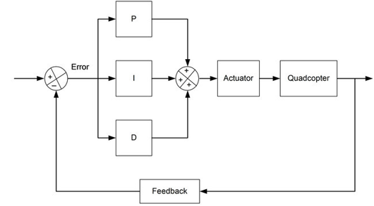 Желаемая скорость вращения называется установкой. Ошибка — это разница между установкой (насколько быстро мы хотим, чтобы двигался БПЛА) и измерением гироскопического датчика (насколько быстро движется БПЛА на самом деле).